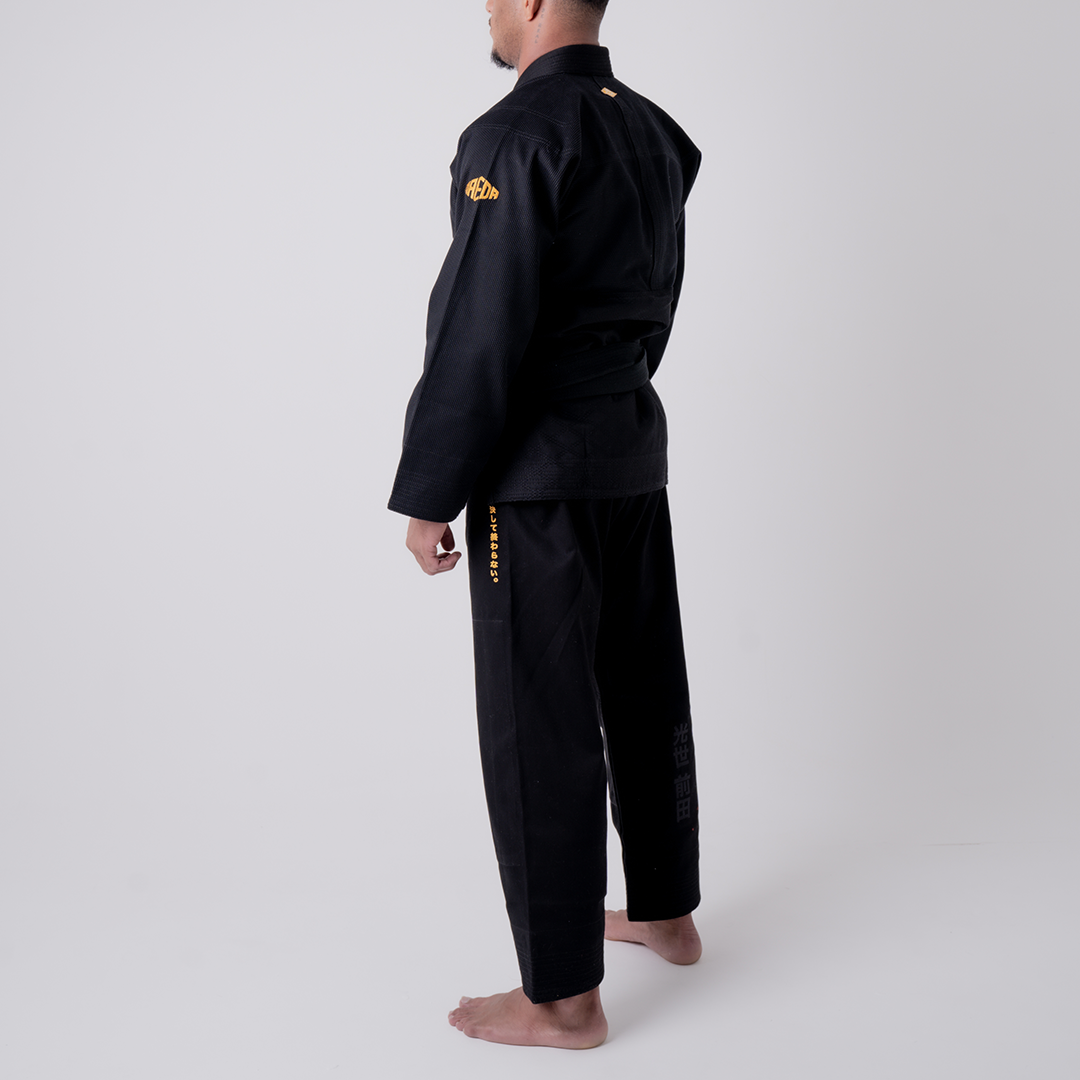 The Sūtsu Oss blurs the line between modern and classic, with a stealth black aesthetic, standard judo skirt, and battling tiger patch.